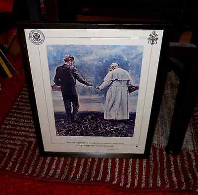 Vintage JFK & Pope Wall Glass Frame Art Print 11x14 Planting Seeds Justice Peace