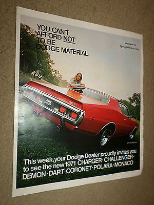 Title (ebay affiliate link): 1971 Dodge Car Dealer Sales Brochure Charger--Challenger--Demon--Coronet--Dart +