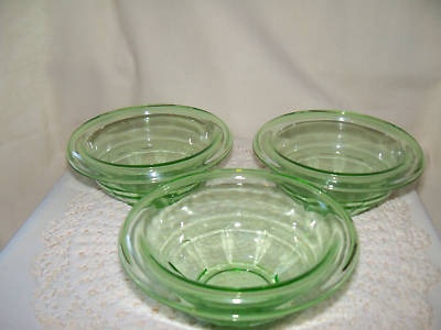 3 Hazel Atlas Green Depression Glass "Restwell" Bowls