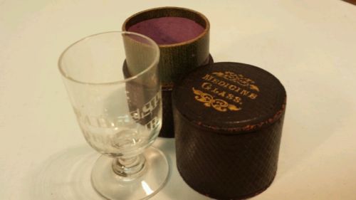 Title (ebay affiliate link): UNUSUAL VINTAGE MEDICINE SHOT GLASS TABLESPOON DESSERT TEA JIGGER CASED SHOOTER