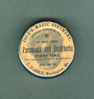 Title (ebay affiliate link): c1890-1900 COLE'S MAGIC OINTMENT Tin, Harrington, Maine, Apothecary, Medical NR