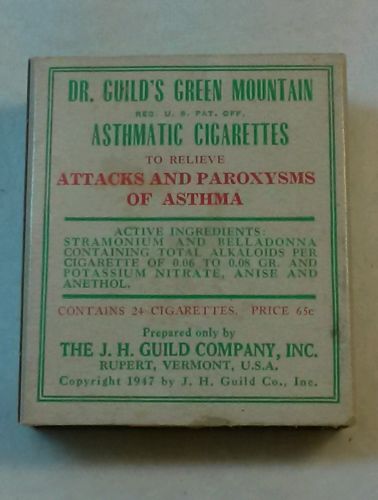 Title (ebay affiliate link): 1940s Dr Guild's Green Mountain Asthmatic Cigarettes, 2/3 full.