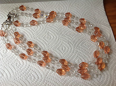 Title (ebay affiliate link): Triple Strand Glass Necklace --18"--Depression Pink & Clear Crystal