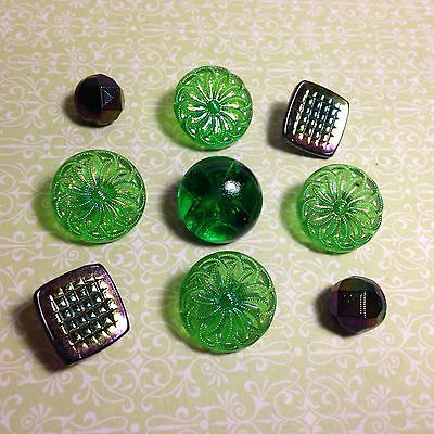 Vintage Depression Era Green Glass Buttons Carnival Luster Button DP**