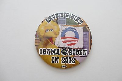 Title (ebay affiliate link): Large & Colorful 2012 Obama Button-Save Big Bird-Excellent Condition!