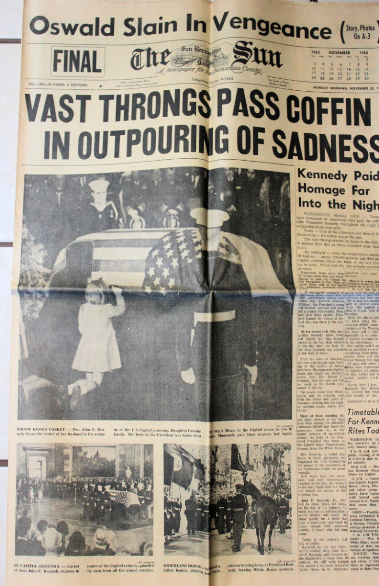 Title (ebay affiliate link): John Kennedy Coffin + Oswald 11/25/1963 NEWSPAPER San Bernardino CA Photos BW