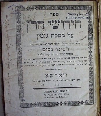Title (ebay affiliate link): CHIDUSHEI HARA"N-GITTIN,WARSAW 1858 w/owners names & writings ASHER L.EHRENREICH