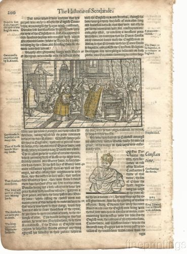 Title (ebay affiliate link): 1577 LEAF FROM HOLINSHED CHRONICLES OF SCOTLAND WOODCUTS BAPTISM ++