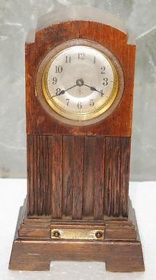 RARE ANTIQUE UNUSUAL OAK MINIATURE GRANDFATHER LONG CASE JUNGHANS MANTLE CLOCK