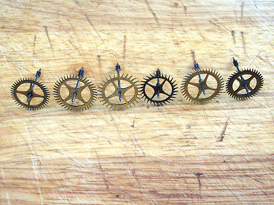 6 GENUINE ANTIQUE FRENCH CLOCK ANCHOR ESCAPE WHEELS all excellent