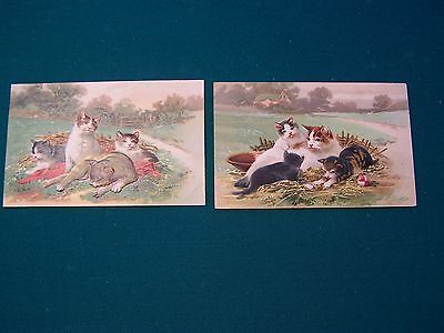 2 Antique German postcards color raised embossed CATS KITTENS 7768 Series VG