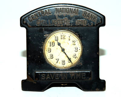 Title (ebay affiliate link): ANTIQUE NEW HAVEN CLOCK SAVE IN TIME BANK CHILLECOTHE O
