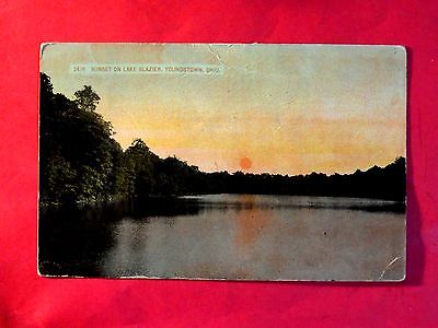 Ohio Vintage postcard DB Youngstown OH Sunset on Lake Glazier