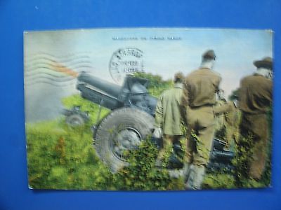 1942 ARMY SOLDIERS FIRE ARTILLERY GUN WWII, 1942POSTMARK LINEN POSTCARD