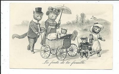 Title (ebay affiliate link): Postcard Fantasy Dressed Cat Family Out for a Stroll