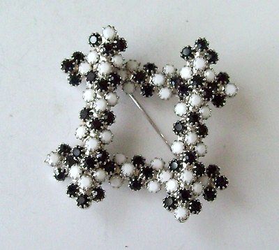Title (ebay affiliate link): Vintage Weiss Double Layered Jet Black & White Milk Glass Rhinestone Chunky Pin