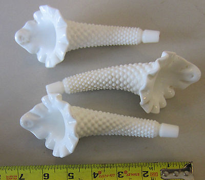 3 FENTON HOBNAIL MILK GLASS horn RUFFLED EDGE CALLA LILY HORN EPERGNE INSERT