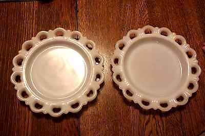 2 Anchor Hocking White Milk Glass Open Lace Plates