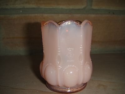 Degenhart Vintage Milk Glass Toothpick holder - pink opalescent- signed