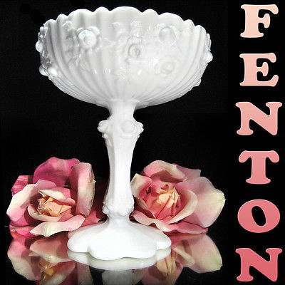 Title (ebay affiliate link): VINTAGE FENTON MILK GLASS CABBAGE ROSE COMPOTE / CANDY DISH PEDESTAL