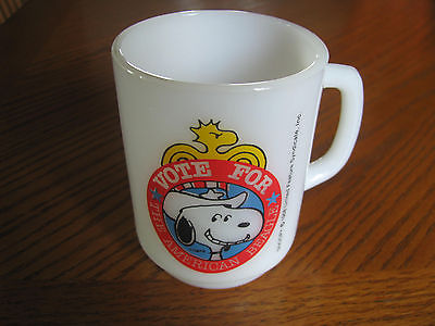 VINTAGE ANCHOR HOCKING SNOOPY MUG VOTE FOR THE AMERICAN BEAGLE MILK GLASS