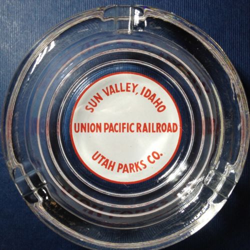 Title (ebay affiliate link): Union Pacific Railroad Glass Ashtray Enameled Sun Valley Idaho Utah Parks Co