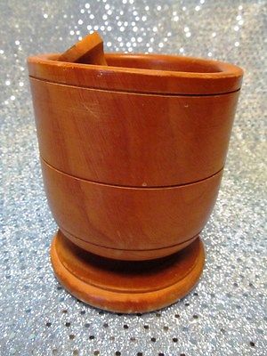 ANTIQUE SOLID WOOD MORTAR AND PESTLE ~ CRUSHING ~ VTG ~ NICE PATINA