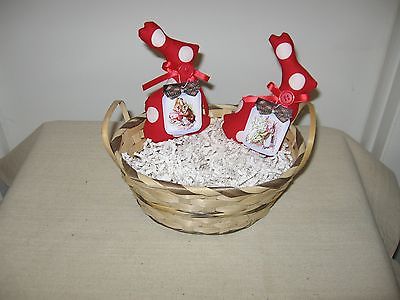 Handmade Primitive Fabric Easter Bunny with Tags Bowl Fillers Set of 2