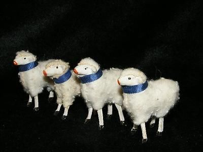 4 VINTAGE ANTIQUE STICK LEG WOOLY SHEEP CHRISTMAS EASTER PUTZ NATIVITY GERMAN