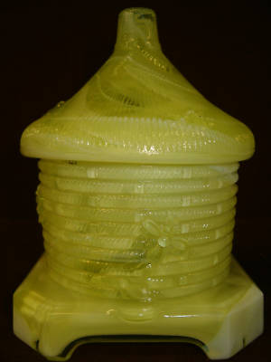 VASELINE MILK SLAG URANIUM ART GLASS HONEY BEE JAR POT