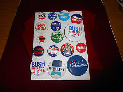 POLITICAL CAMPAIGN PINBACK BUTTONS BADGES LOT OF 16 PRESIDENT ADVERTISING