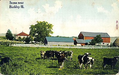 Title (ebay affiliate link): SCENE NEAR BUCKLEY, ILL. IL. ILLINOIS. COWS. FARM. BUILDINGS. BARN.