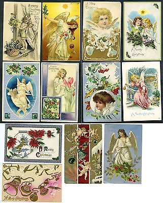 Antique Christmas Postcards With Angels,12 Cards - Embossed, PM Dates 1905-1911