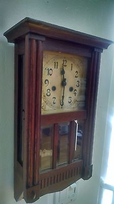 ANTIQUE MISSION SHELF WALL CLOCK RARE AND UNUSUAL BEVELED GLASS