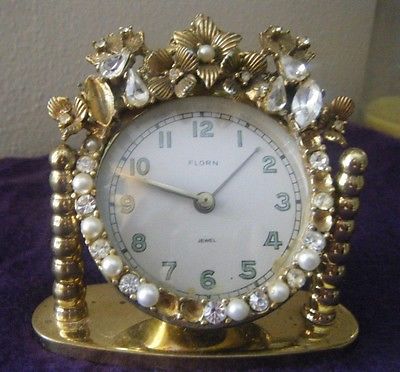 Title (ebay affiliate link): FLORN GERMAN 'BLING' ALARM CLOCK RHINESTONES OLD ANTIQUE gilt gold