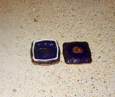 Limoges France Blue Gold Porcelain 2" Square Decorative Jewelry Trinket Box