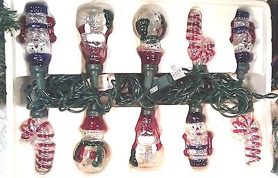10 Light Strand Vintage Style Figural Christmas Tree Lights Candy Cane Snowman