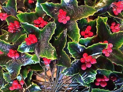 VTG GESSO CHRISTMAS HOLLY MADE IN JAPAN MIB NOS TIED BOX 2DZ BUNCHES ORNAMENTS