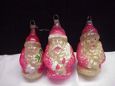 Title (ebay affiliate link): 3 Small Vintage Santa with Feather Tree Mercury Glass Ornaments