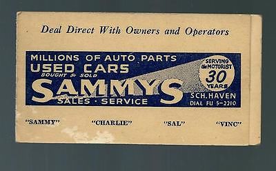 Vintage Foldout Ad w/ photo - Sammy's Used Cars & Auto Parts in Schuylkill Haven