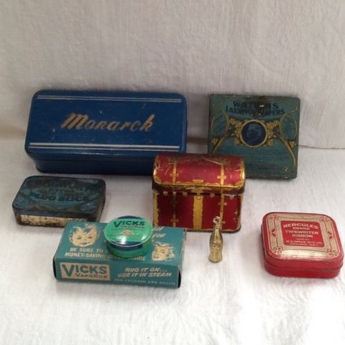 Title (ebay affiliate link): Vintage Merchandise Tins, Sewing, Medicine, Tea, Lot Of 7 Plus Coca-Cola Charm