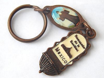 Vintage OLD Recuerdo de Basilica Mexico Lady of Guadeloupe Mary Medal Keychain