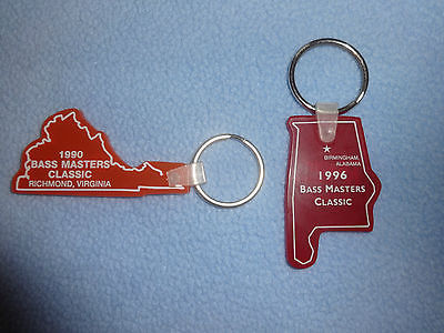 Vintage Bassmaster CLASSIC FISHING Key Chains 1990 & 1996 Virginia & AlabamaMINT