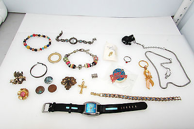JUNK DRAWER LOT -WATCH,KEY CHAIN,COIN,RING,VINTAGE JEWELRY FINDINGS SCRAP or NOT