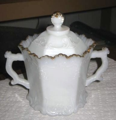 Vintage Victorian Fancy Milk Glass w/ Gold Sugar Bowl
