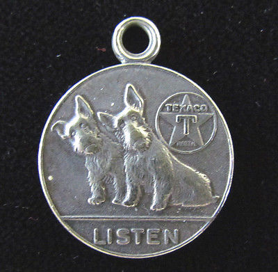 VINTAGE advertising TEXACO Silver Metal KEY CHAIN FOB " LISTEN " SCOTTIE Dogs