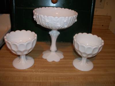 PEDESTAL MILK GLASS LOT FLOWERS WHITE UNMARKED