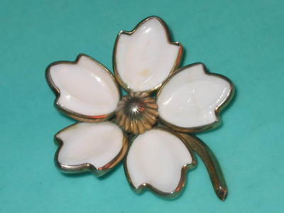 Vintage 50s Milk Glass Petal Flower Pin Brooch Trifari