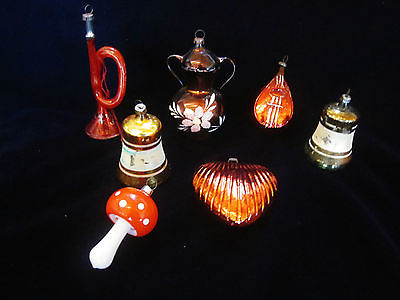 Title (ebay affiliate link): (7) Vintage Figural Glass Christmas Ornaments -horn,sugar bowl,heart,bells