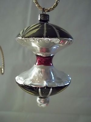 Title (ebay affiliate link): Vintage glass blown Christmas ornament black/silver/yellow barbell shaped